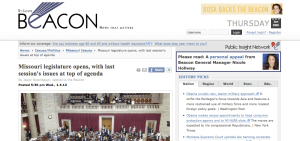 On the St. Louis Beacon, one of the lead articles featured on the home page as of 10:10 a.m. (PST) Thursday, Jan. 5, was titled “Missouri legislature opens, with last session’s issues at top of agenda.” Its subject was the Missouri legislature.