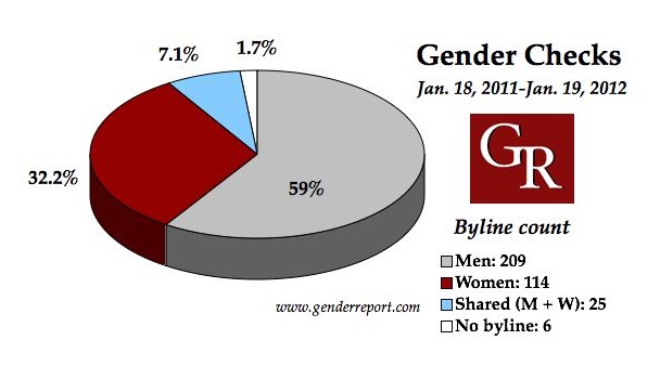 Women byline 32.2% of lead news articles in year-long Gender Check study