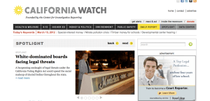 On California Watch, one of the lead articles featured on the home page as of 7:30 a.m. (PT) Tuesday, March 13, was titled “White-dominated boards face legal threats over racial makeup.”