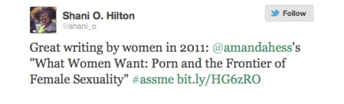 Meanwhile, Brooke Hatfield started an #ASSME hashtag on Twitter in an effort to point out quality work by women in 2011. Here are some examples: